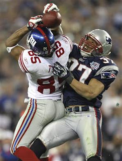 On that drive, David Tyree made an unbelievable catch after Eli escaped what would have been a sure sack and heaved the ball downfield for a huge gain and a first down. Plaxico Burress then caught the game-winning touchdown on a fade route with 35 seconds left to back up his prediction earlier in the week of a New York Giant win. Like his brother last year, Eli was named the Super Bowl MVP as the Giants shocked the world (and the TransGriot) by beating the previously unbeaten New England Patriots 17-14 in a monumental upset.