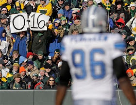 If there are any Detroit Lions fans who still care about the once proud NFL franchise after this season, they are in mourning because the team has made history in a negative way.They fought hard to avoid the stigma. They were even tied 14-14 at the end of the third quarter. But unfortunately for them NFL football games are 60 minutes and four quarters long and fell to the Packers 31-21 in Green Bay.