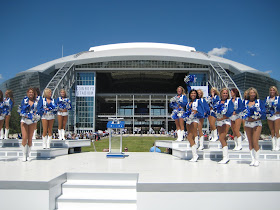 The new $1.15 billion dollar home of the Arlington Cowchips has every bell and whistle you could want as a fan. Climate controlled comfort, retractable roof, great site lines and those world famous Dallas Cowboy Cheerleaders shaking what their mamas gave them. For owner Jerry Jones, the things he likes about the 100,000 seat Cowboys Stadium is that his new football playpen has more seats and luxury boxes than Texas Stadium did. He can also host other revenue producing events like Super Bowls, major concerts such as the upcoming U2 one October 12, Big 12 Championship games and NCAA Final Fours.