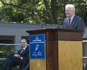 Today was the 85th birthday of President Jimmy Carter. He spent his milestone birthday reopening his Carter Center after it shut down in April for several months to do a multimillion dollar makeover and upgrade.The ceremony and ribbon cutting, which drew a standing room-only crowd, were held on the front lawn of the Carter Presidential Museum and included the birthday man, former First Lady Rosalynn Carter, former Vice President Walter Mondale, Carter Library and Museum Director Jay Hakes, Georgia Governor Sonny Perdue, Atlanta Mayor Shirley Franklin, civil rights leader Rev. Joseph Lowery, and other dignitaries.