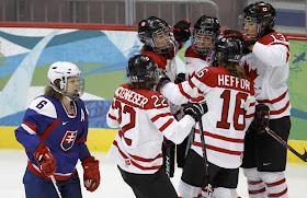 The two time defending gold medallists opened Group A preliminary play against first timers Slovakia. The Canadians raced out to a 7-0 first period lead and never looked back in their record setting 18-0 blowout.