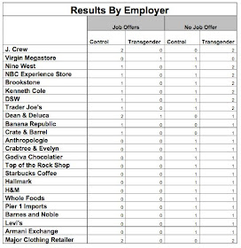 The group sent a trans and cis person to each one of the targeted retailers to apply for jobs with matching resumes. The resumes matched in respects of age, race, and work experience.