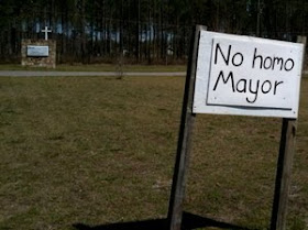 The mayoral runoff has been marred by the usual hatemongering from the 'christian' conservafools. It has led to some ugly displays of homophobia such as the pink flyer mocking Lowe that found itself planted on car windshields in the runup to election day..
