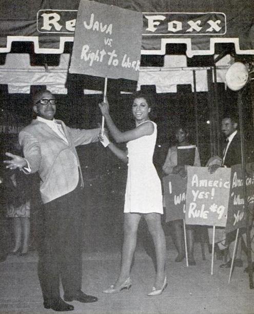 She first pops up in the November 16, 1967 issue of JET when a picture was taken of her picketing comedian Redd Foxx's nightclub. The Los Angeles Police Department shut down her show there because of a law that was on the books at the time banning female impersonation.The August 10, 1978 JET issue mentions Java meeting her idol while performing at a star studded Los Angeles birthday party Lena was throwing for her friend Gertrude Gipson.