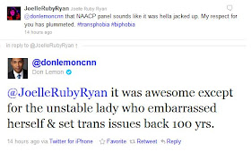 Perhaps you weren't aware that her passionate anger about the NAACP, one of our iconic legacy organizations, erasing us from a historic panel on LG(bt) issues is a sentiment shared by many of us in the African-American trans community and our allies. So Mr. Lemon, if you were in our shoes, how mad would you be?