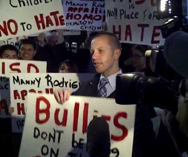 If HISD District III trustee Manuel Rodriguez thought the Thanksgiving holiday, a wacked phobic apology and the passage of time would lessen the anger of the Houston rainbow community and our allies over the homophobic campaign flier he unleashed during the final days of his contentious reelection campaign for his school board seat, um no.A website called HISDbully.org and a Facebook page entitled Remove The HISD Bully have sprung up with the goal of getting Rodriguez to resign from the HISD board. His opponent Ramiro Fonseca decided not to seek a recount in the race that Rodriguez won by 25 votes.
