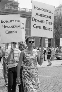 In the ’60s, when Gittings was one of the organizers of the Annual Reminders protest at Independence Hall, the point of the men dressing in suits and the women wearing dresses and carrying pocketbooks was they did not want drag queens, effeminate males and butch dykes — the homosexual stereotypes — at the protest. The reason effeminate males, drag queens and butch dykes were the stereotype is because they were the only people who were out of the closet. Rock Hudson certainly wouldn’t turn from kissing Doris Day and say, “I really want to suck tonsils with Troy Donahue!” That may have been the official moment that the movement began intentionally excluding and harassing gender-variant people out of the movement.