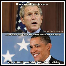 It amuses me when the 'white'-wing frothing at the mouth haters of President Obama call him the 'worst ever' (yeah, right) when those of us in reality based world know that the title of 'Worst POTUS Ever' belongs to the previous occupant of the Oval Office.hands down.