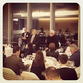 The reception was on the 44th floor of the building and after a few moments we headed to our assigned seating to eat. I was seated next to Sean Bugg of Metroweekly, and when he discovered I'd lived in Louisville for almost nine years that triggered some discussion between us and our other dinner companions about Kentucky politics before we moved to the welcomes from Bil Browning, Ruben Mendiola and Matt Foreman and the remarks from David Mixner and Cleve Jones to close out the event.