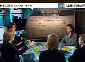 When I tune in to MHP I can regularly see a diverse palette of people sitting behind the #nerdland desks chatting about the issues of the day. That diverse palette of people also includes members of the GL community who are well represented and not there to simply talk about SGL and trans community issues. But it seems as though the only time transpeople get a call to appear on MHP is to discuss trans or GLBT related issues, and only white trans people get the opportunity to do so
