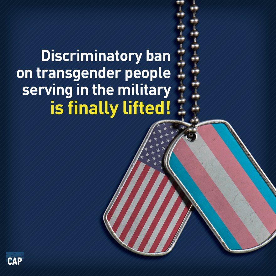 "Effective immediately, transgender Americans can serve openly, and they no longer can be discharged...just for being transgender.”
