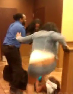 Case, are you condoning the giant apes actions? I don't care if myself being a 230 lbs walked in a women's bathroom, it doesn't let someone beat the crap out of me. Transgender or not, it does not condone it, I honestly hope that girls ends up in a ditch somewhere, this attack was disgusting, and they kept going back for more and more. The employees that work there are cowards, the manager and everyone but that poor older woman are cowards. I would have loved to beat the living S#&* out of two pieces of crap stomping a defenseless girl.