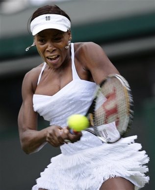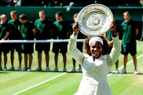 It's up to Serena to uphold Williams family honor in her semifinal against Petra Kvitova of the Czech Republic. Frankly, after seeing that BS on the Wimbledon website, I hope Serena wins her next two matches and I see her on Saturday holding the Venus and Serena Rosewater Dish aloft for the third year in a row.