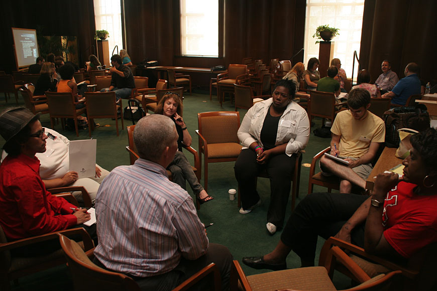 When those 30 minutes were up, it was off to Randall Terrell's group to discuss the current landscape of Texas politics, the upcoming 2010 midterms, redistricting and how all of this affects the Texas TBLG community.